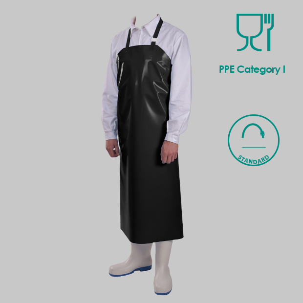 DELTA apron is a Personal Protective Equipment (PPE) offering a level of protection against mechanical risks and offering a level of resistance to water penetration. This apron is certified as a PPE category I and is a must-have of the food industry outfit.