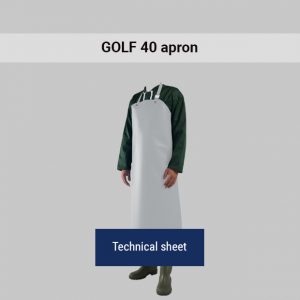 GOLF 40 apron offers a high resistance to standard cleaning products. GOLF 40 is a personal protective equipments (PPE) category I. GOLF 40 is popular among fishmongers, oyster farmers and farmers for milking.