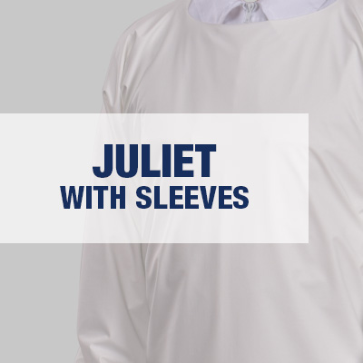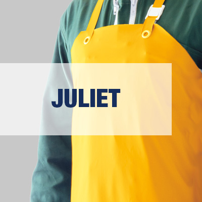The JULIET work apron range offers a high resistance to standard cleaning products. JULIET aprons are personal protective equipments (PPE) appreciated for their lightness, flexibility and excellent tear resistance. The JULIET range is available in 2 models : JULIET apron with stainless steel eyelets and JULIET apron with sleeves.