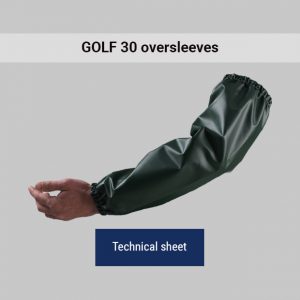 GOLF 30 oversleeves are suitable for use in the food industry. These vinyl protective oversleeves offer a high resistance to standard cleaning products. GOLF 30 is popular among fishmongers, oyster farmers and farmers for milking. Vinyl both sides coated on polyester support.