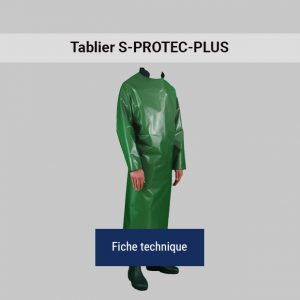 Le tablier S-PROTEC®PLUS, développé en partenariat avec SYNGENTA, est un tablier de protection chimique offrant une protection partielle du corps de type PB [3] à manches contre la perméation de certains produits chimiques liquides sous forme de jets et de produits phytosanitaires comme le Prowl 3.3 lors de la préparation de bouillie dans le pulvérisateur agricole (pulvérisateur à rampe ou pulvérisateur pneumatique ou atomiseur).