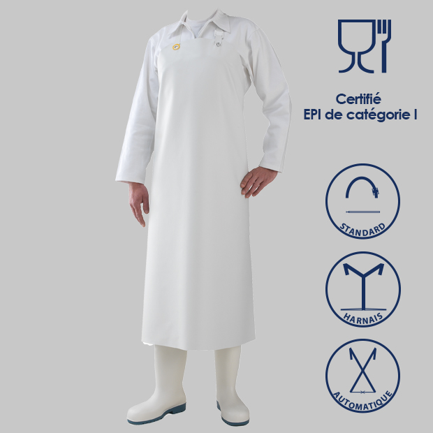 Le tablier LIMA est adapté à une utilisation dans les industries agroalimentaires. Il est très apprécié pour le travail en boucherie, laiterie et fromagerie.