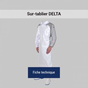 Le sur-tablier DELTA en polyuréthane se fixe sur le tablier métallique. Il est adapté à l’utilisation dans les industries agroalimentaires comme protection contre les éclaboussures (sang et graisses animales).