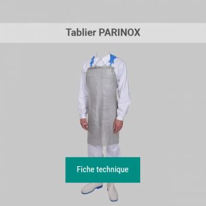 Le tablier métallique et la tunique PARINOX sont fabriqués avec une cotte de mailles 100% inox.