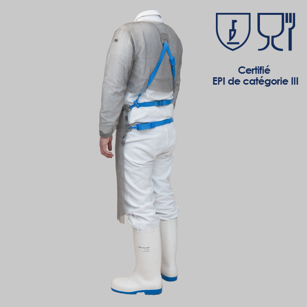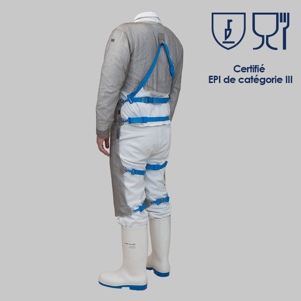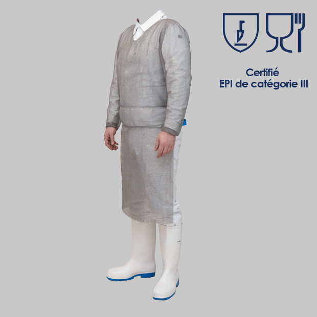 - Buste : EN ISO13998 (2003) niveau 2 de performance (adapté pour les opérations de désossage).