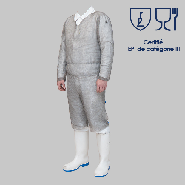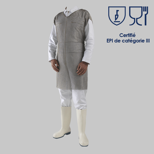 Le tunique de protection en cotte de mailles TPLUS est un équipement de protection individuelle (EPI) de catégorie III.