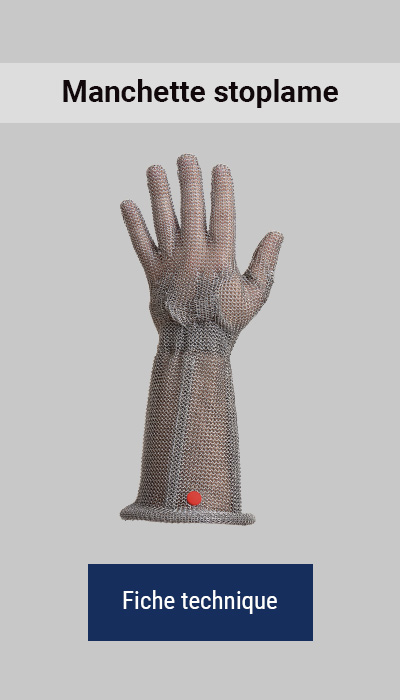 - La manchette longue et la manchette Stoplame sont équipées de raidisseurs en inox