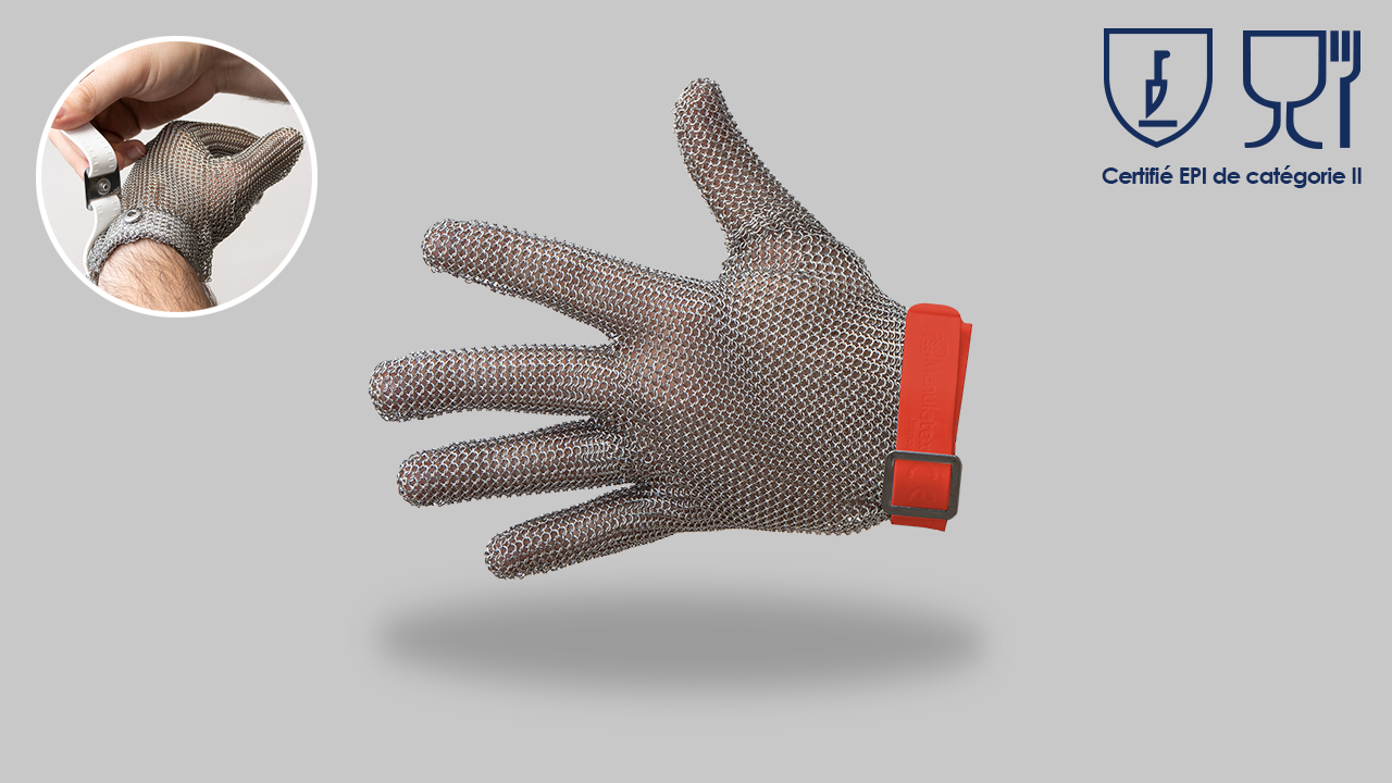 - Le gant GCM est fabriqué en cotte de mailles 100% inox