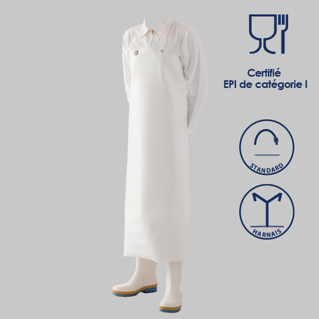 Cet équipement de protection individuelle est certifié en catégorie I et fait partie de la tenue de travail idéale pour le secteur agroalimentaire.